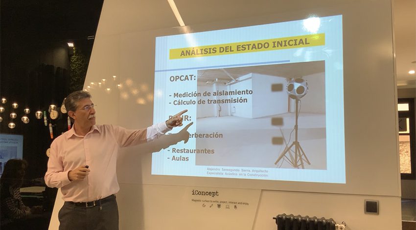 El pasado miércoles 26 de febrero tuvimos la ocasión de disfrutar en nuestro Showroom de una interesante sesión sobre acústica para profesionales, gracias a la Master Class impartida por el Arquitecto y especialista en acústica Alejandro Sansegundo, evento al que asistieron casi 50 personas, y en la que se trató desde un punto de vista técnico, normativo, pero sobre todo pedagógico, cómo entender y afrontar el problema del ruido.